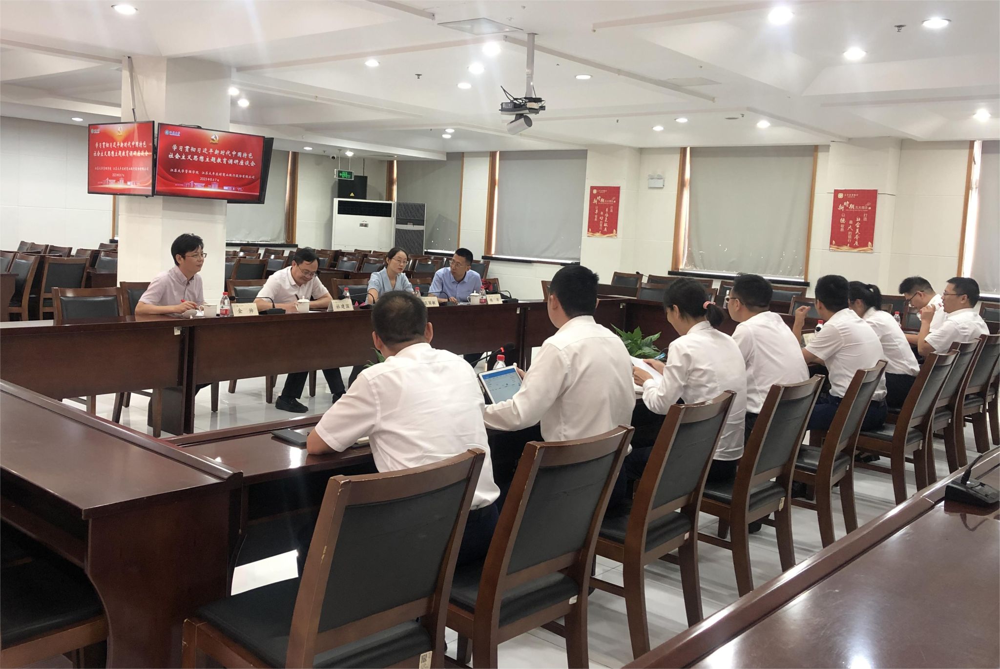 党委书记王丽敏、院长杜建国教授,副院长金帅教授、MBA中心副主任陈洋一行4人前往江苏大丰农村商业银行,开展学习贯彻习近平新时代中国特色社会主义思想主题教育调研活动。此次活动通过深入用人单位围绕研究生人才培养及校企合作等主题展开调研。调研团队首先与来自大丰农商行的伊莉影片区