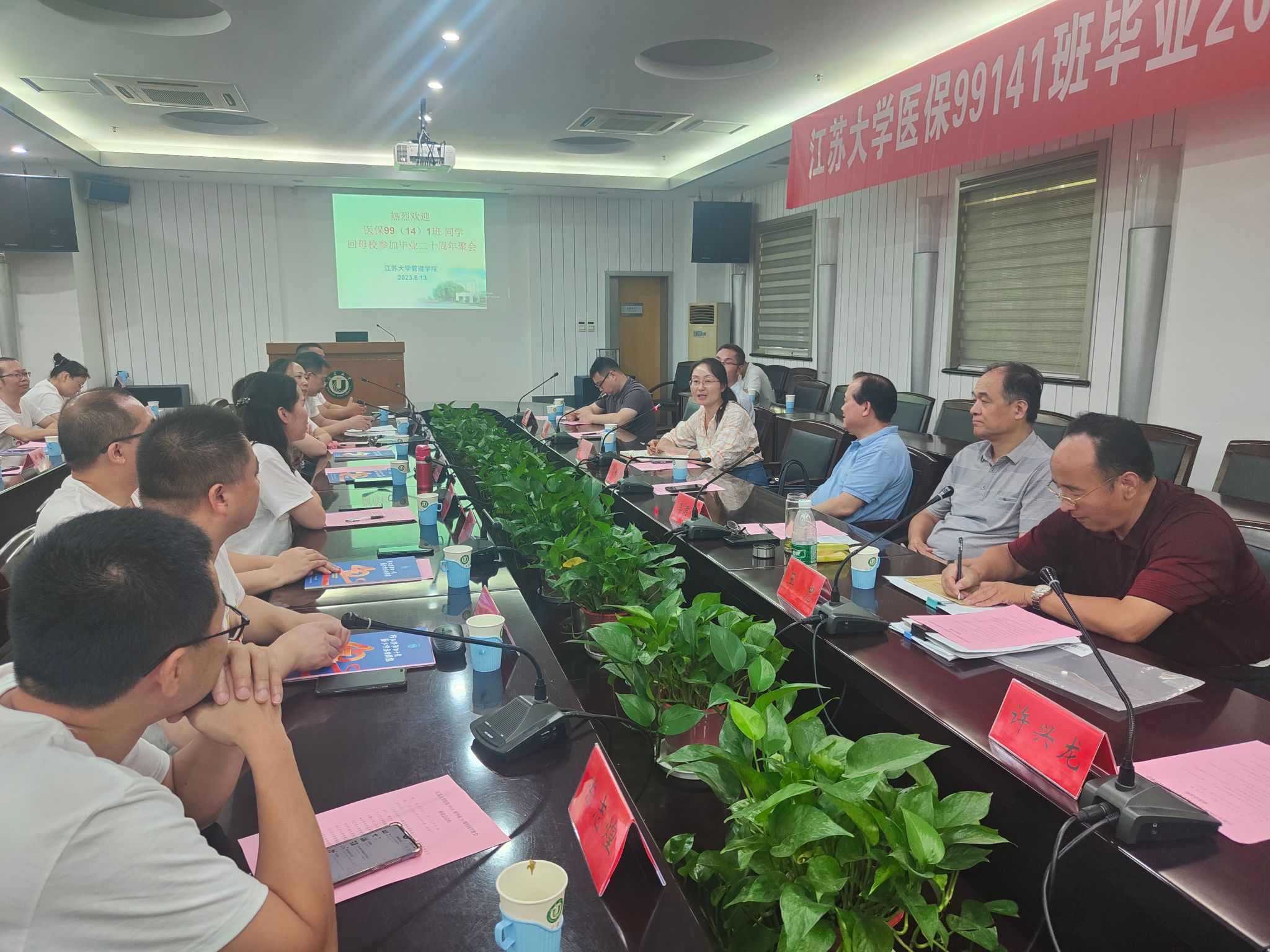 医疗保险99级校友返校座谈会在会议中心第二报告厅举行,医疗保险99级校友欢聚一堂,院党委书记、院校友会会长王丽敏,公共事业管理学科带头人、医疗保险专业创始人、博士生导师周绿林教授,公共事业管理系主任詹长春教授以及相关教师代表出席座谈会。座谈会由医疗保险99级校友代表、无锡市锡山人民医院办公室主任胡进秋主持。